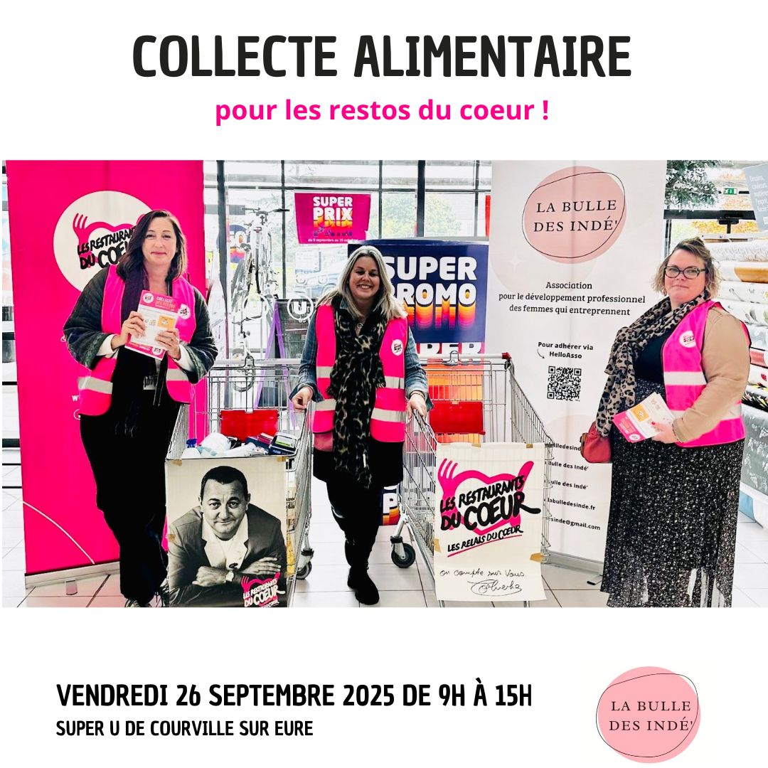 Vendredi 26 septembre, plusieurs membres de La Bulle des Indé’ se sont mobilisés pour une belle action solidaire : une collecte alimentaire organisée au Super U de Courville-sur-Eure, au profit des Restos du Cœur de Chartres. Dans la bonne humeur …